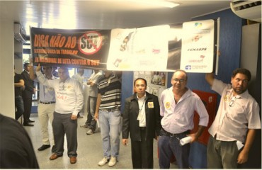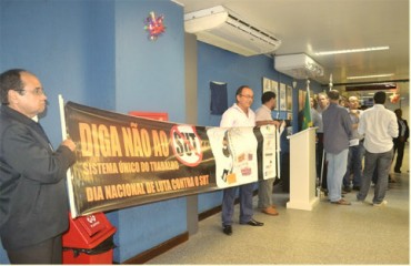 Para protestar contra o sucateamento da Superintendência Regional do Trabalho e Emprego da Bahia – SRTE/BA, Auditores-Fiscais do Trabalho e Servidores Administrativos realizaram um ato público em frente à sede do órgão nesta quinta-feira, 11 de dezembro, com a presença do ministro do Trabalho e Emprego Manoel Dias, que foi ao Estado lançar a Carteira de Trabalho Digital. Eles cobraram providências em relação à pane no ar-condicionado do prédio e outros problemas que não foram resolvidos ao longo do ano e que causaram muitos transtornos aos servidores e aos trabalhadores. No mesmo dia, os servidores participaram do seminário “Condições de Trabalho dos Auditores-Fiscais do Trabalho no Estado da Bahia”, na Assembleia Legislativa (veja matéria).