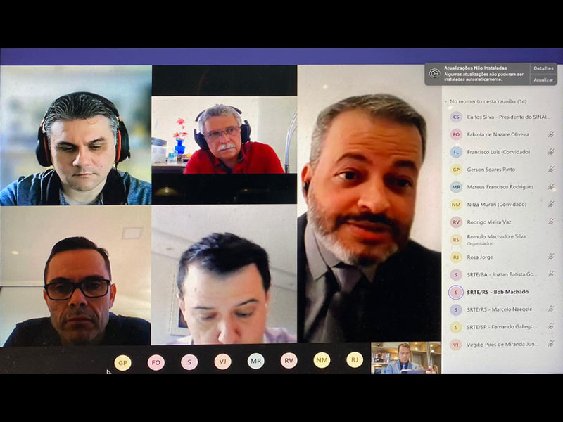 Dirigentes do SINAIT tiveram na manhã desta sexta-feira, 17 de julho, a primeira reunião com o novo subsecretário de Inspeção do Trabalho, Rômulo Machado, e integrantes de sua equipe, por plataforma on-line. Pelo Sindicato participaram o presidente Carlos Silva, a vice-presidente Rosa Jorge e os diretores Bob Machado e Francisco Luís Lima. Pela Subsecretaria de Inspeção do Trabalho – SIT estiveram presentes o subsecretário, Fabíola de Nazaré Oliveira, Fernando Gallego Dias, Gerson Soares Pinto, Joatan dos Reis, Marcelo Naegele, Mateus Francisco Rodrigues e Rodrigo Vieira Vaz.