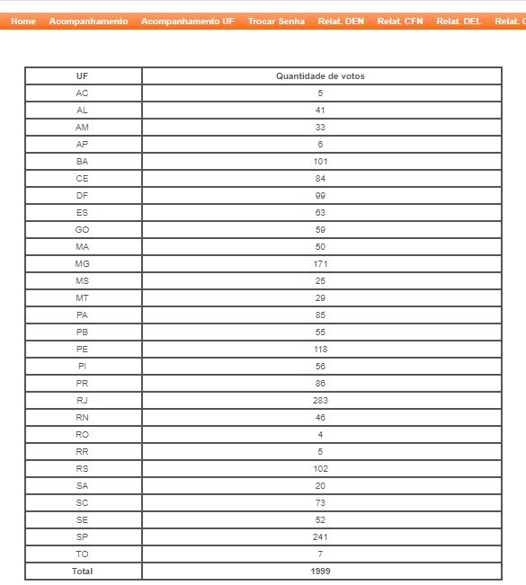 Até o início da noite deste domingo, 1.999 Auditores-Fiscais do Trabalho votaram em todos os estados do País. Veja o extrato do sistema de votação aqui.