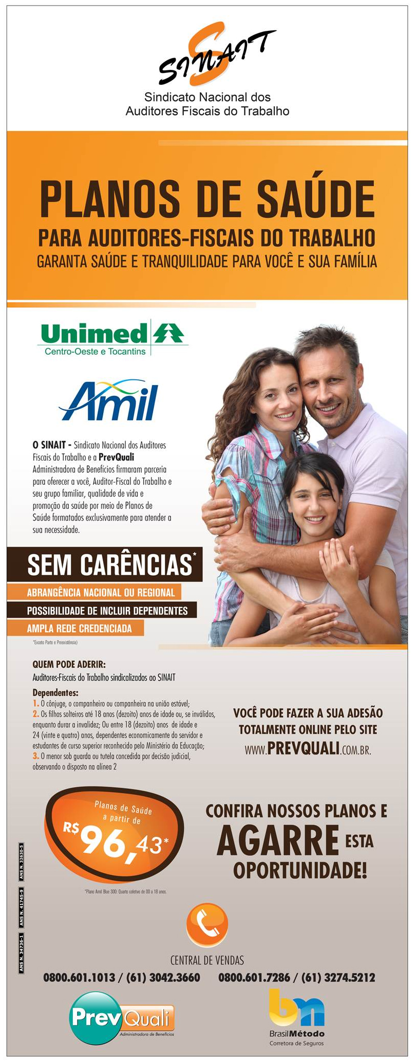 O Sinait firmou parceria com a Brasil Método Corretora de Seguros e a Prevquali Administradora de Benefícios. As duas empresas poderão orientar os filiados sobre adesão a outros planos de saúde, odontológicos e seguros de vida. O prazo para adesão sem carência para os filiados que queiram mudar de plano de saúde e odontológico é até o dia 20 de julho.